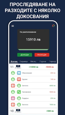 "Бюджет и следене на разходи" е вашето умно решение за безупречно финансово управление. Поемете пълен контрол над всеки лев, проследявайте лесно разходите и изградете стабилен бюджет. За постигане на пълна финансова яснота и спокойствие.
