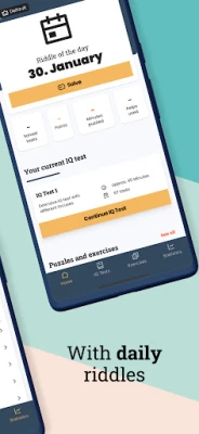 IQ Test Brain Training Riddles е тренировка за мозъка с различни задачи. Разработен от студенти на Университета в Росток, този тест за интелигентност предлага упражнения, обяснения и сравнение с приятели. Подгответе се за бъдещи мултиплейър режими и предизвикателства, повлияни от WAIS-IV.