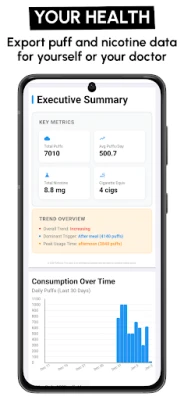 Използвайте „Тракер за отказване от пушене и вейпинг", за да прекратите употребата на цигари и вейп. Мощен инструмент за проследяване на напредъка ви към живот без никотин и по-добро здраве.