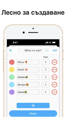 Wheel+ прави взимането на ежедневни решения лесно и забавно. Спрете да мислите прекалено – просто завъртете колелото и получете отговори на най-често задаваните въпроси. Независимо дали избирате ястие, дата или отговор "Да/Не", това весело рулетно приложение ще реши вместо вас.